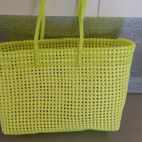 En taske (net) med et kraftigt farvet mønster.