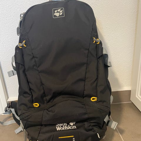 Vandrerygsæk, Jack Wolfskin, Flot, lækker og funktionel rygsæk til weekendturen eller vandreturen. Med hoftebælte, toplomme, sidelommer mm. 36 L. Aldrig brugt og stadig med mærke.