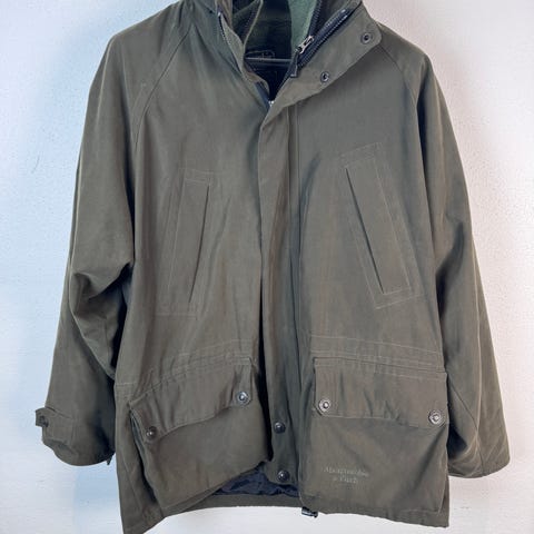 Parkacoat, str. 36, Abercrombie, Grå, Artic parka, Næsten som ny, Super lækker vinterjakke fra Abercrombie str small. Ingen slid ved ærmer eller andre steder. Der mangler 2 knapper (se billedet) men lynlås fungerer helt optimalt. En rigtig god jakke. Den er grå.