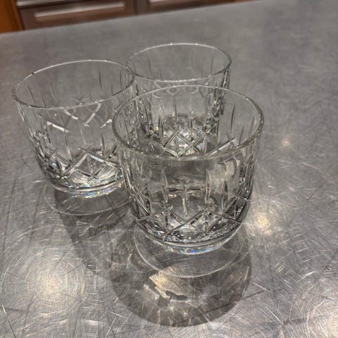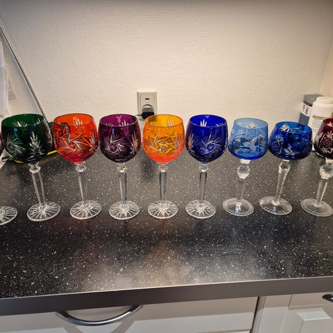 Sættet er mundblæst i en let kvalitet af glas. I denne teknik kan der forekomme mindre luftbobler.