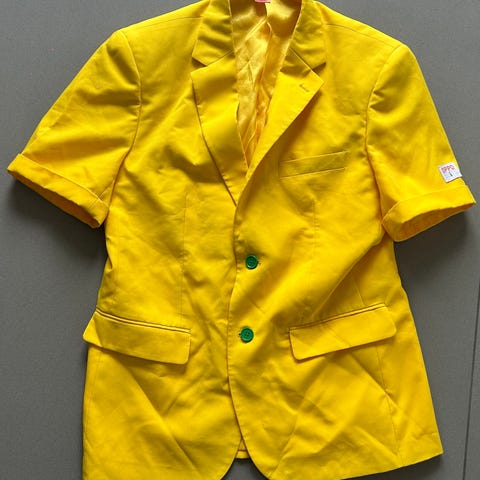 Jakkesæt, Oppo, str. XL, Pac-man jakkesæt med slips i samme stof. Brugt 2 gange og som nyt. Jeg bruger str 42-44 i skjorter og det passer fint. Kan evt sendes