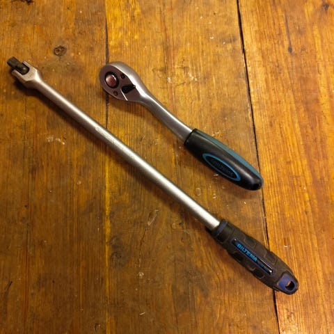 Skraldenøgle, Assembly tools, Skraldnøgle / skralde skruetrækker med bit- og topsæt.