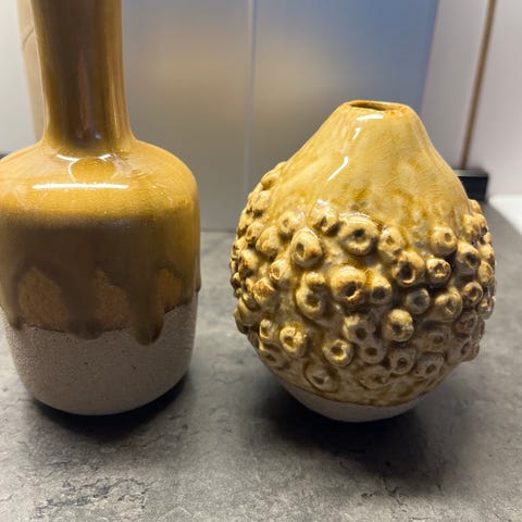 Sødeste små miniature vaser - én af dem (den i midten) med tekst på den ene side: Stevns Klint.