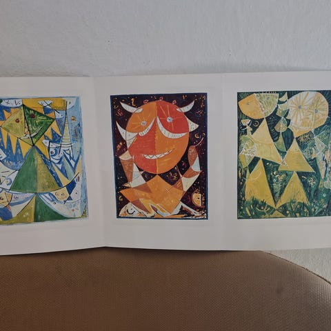 Original kunstmappe , Egill Jacobsen , b: 59 h: 80, Kæmpe original kunst mappe fra 1976. 'Fem farvemasker' af den dansk ekspressionistisk kunstner og medstifter af CoBrA-gruppen.
