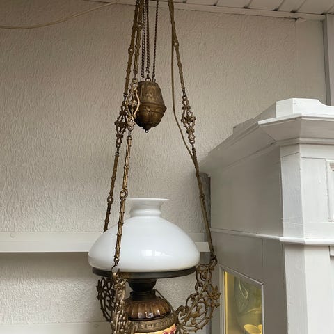 Antik lampe, Messing, Gammel antik loftlampe i messing lavet om til el