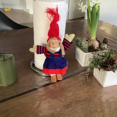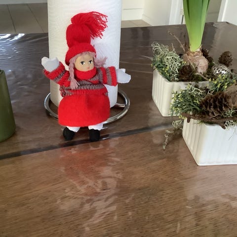 Her sælges den sødeste nissepige, kan både have bukket og strakte ben.