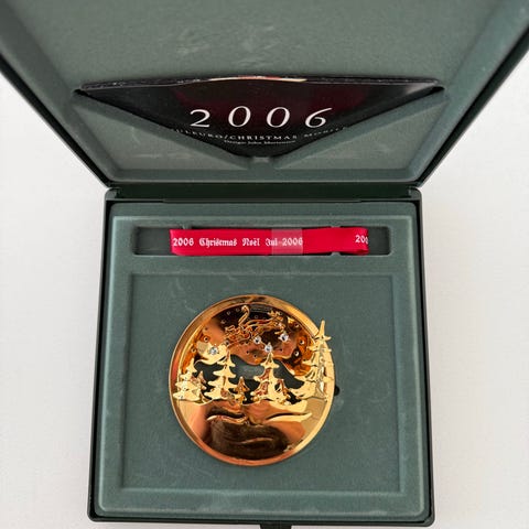 Jule ophæng, Juleophæng fra George Jensen model 2008. Original bånd i både rød og grøn medfølger samt hardbox. Fra ikke ryger hjem.