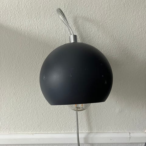Sengelampe, Danalux, Lille sengelampe i hvidt metal. Med tre ringe, den største er i diameter er 12 cm.