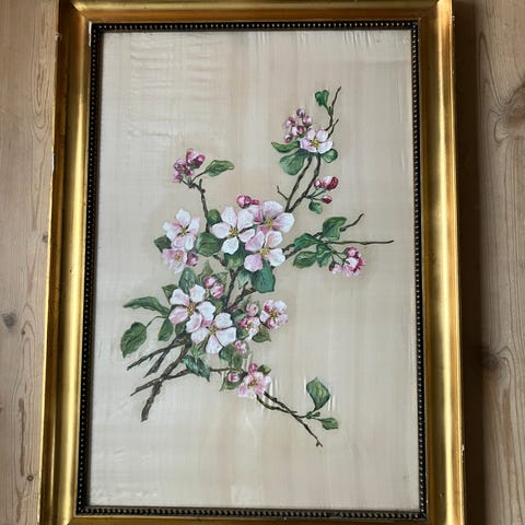 Oliemaleri, Sx Flieg Eva, motiv: Blomster/Have, b: 29 h: 39, Smukt blomstermotiv i guldramme