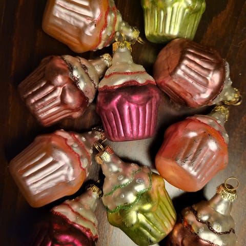 Ornament cupcake julepynt, Super fine kulørte cupcakes til at hænge på juletræet eller en julegren.