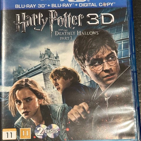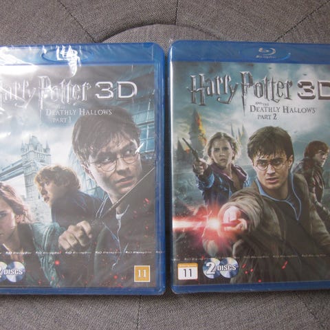 Harry Potter and the Deathly Hallows 1-2 i 3D, instruktør NN , Blu-ray, eventyr, 7’eren i serien. Begge film komplet. Finde skiver. Der er både 3D udgaven og almindelig Blu-ray. Prisen er for begge.