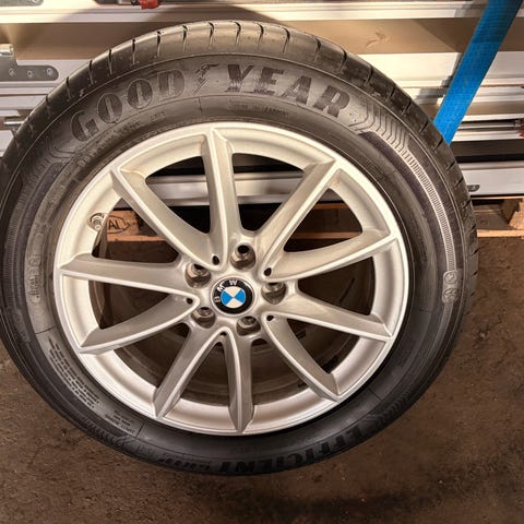 Alufælge, 17", BMW, 225 / 60 / R17, krydsmål 5 x 120, ET32, sommerdæk, Pirelli, 95% mønster, fælge med dæk, Rigtig flot original BMW fælge med næsten ubrugt Pirelli run flat sommerdæk. Passer til BMW X3. Uden TPMS ventiler.