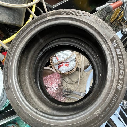 Stadigvæk godt med bid i.Race racerdæk banebrug racerbilsdæk eller til indretning. Butiksinventar