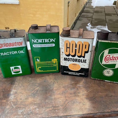 Dåser, Esso, Castrol, Texaco, Har disse gamle oliefunke jeg ønsker at sælge.