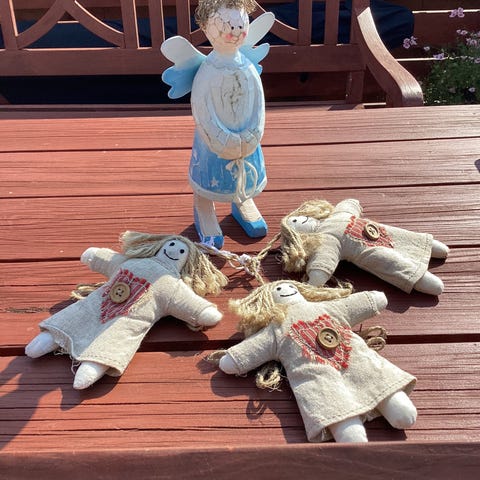 Torslow engle, 5 gamle plastik-engle fra Torslow.