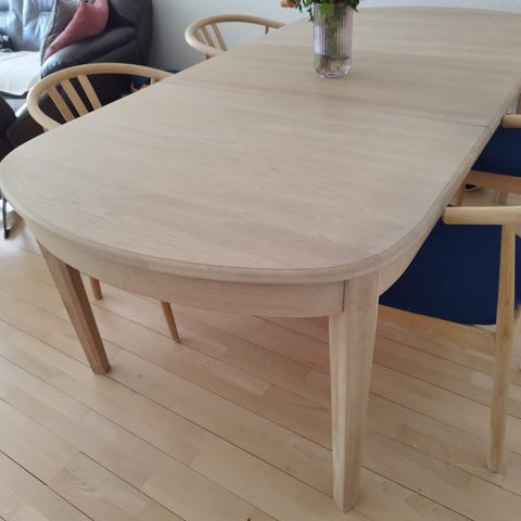 Spisebord, Egetræ, Fynsk Snedkeri, b: 95 l: 160, Sildebensbord Eg (brede stave) - mat lakeret. Lille mærke (se 3. billede) samt enkelt lille hak