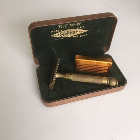 (https://en.wikipedia.org/wiki/Gillette: Vintage Gillette safety razor, old type set, made in USA, circa 1920s)