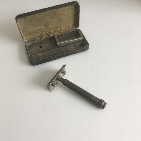 Andre samleobjekter, Antik gillette barberskraber i messing - fra begyndelsen af 1900 tallet.