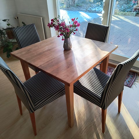 Anden arkitekt, Haslev Snedkeri, Bord 85/85 +plade 45 cm 2 stole