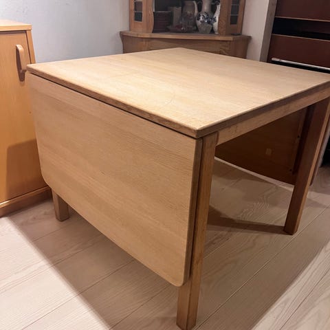 Anden arkitekt, Haslev Snedkeri, Bord 85/85 +plade 45 cm 2 stole, Sæbebehandlet lys eg.