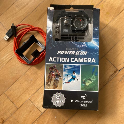 SportsCam / ActionCam, digitalt, ABUS, TVVR11002, Brugt en gang, fejler intet og kan ikke ses det har været i brug en gang - som nyt. Sælges med alt medfølgende tilbehør og 32gb SD micro kort. Optager i 1080p full HD, bemærk længe batteri tid end f.eks. GoPro kamerane. Vandtæt ned til 20m, medfølgende forskellige holdere og vandtæt hus samt fjernbetjening.
