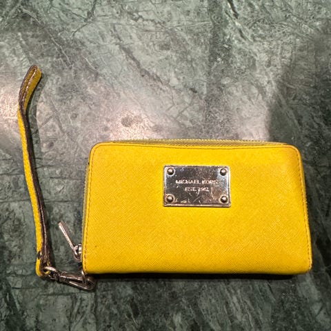 Michael Kors sort quiltet læder clutch med guldnitter og metalplade med logo. Clutchen har en indvendig beige foring og en enkel åbning. Til opbevaring af Ipad/tablet