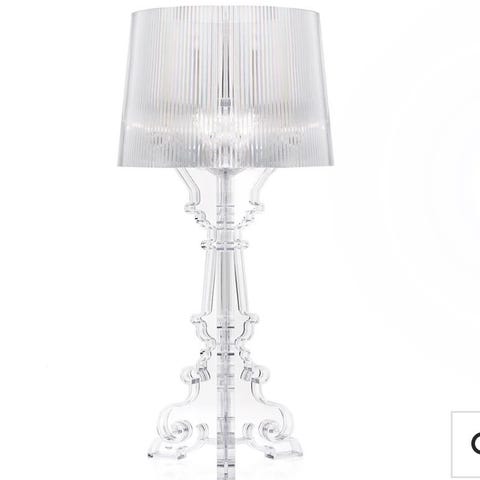 Anden bordlampe, Kartell, Kartell - Bourgie Krystal bordlampe Beskrivelse: Kartell Bourige bordlampen - lampen som der er barokpræget, romantisk, men samtidig minimalistisk og enkel. Kartell har med Bourgie lavet en unik lampe. Kartell har med ”Bourgie” genopfundet den klassiske baroklampe. Lampen er støbt i polycarbonat og forener dermed de klassiske former med moderne materialer. I den gennemsigtige version bryder lampeskærmen lyset med sine mange facetter og skaber dermed et meget levende lysmiljø. Lampen kan indstilles til at have tre højder – 68, 73 og 78 cm. Materiale: Polycarbonat Designer: Ferruccio Laviani