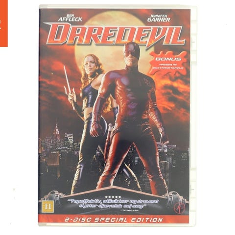Daredevil Directors cut , instruktør Mark Steven Johnson, DVD, gyser, Da Matt Murdock (Ben Affleck) er 12 år gammel, bliver hans far myrdet og han selv oversprøjtes med kemikalier og mister synet. Efter ulykken skærpes Matts øvrige sanser ekstremt og i det skjulte udvikler han sine overmennelkelige evner.