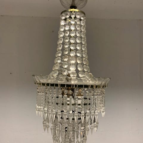 prismelysekrone, Krystal, 120 år gl., Fin lysekrone fra start 1900 tallet som er helt istandsat , lige til at hænge op. alt originalt og med slebne prismer.