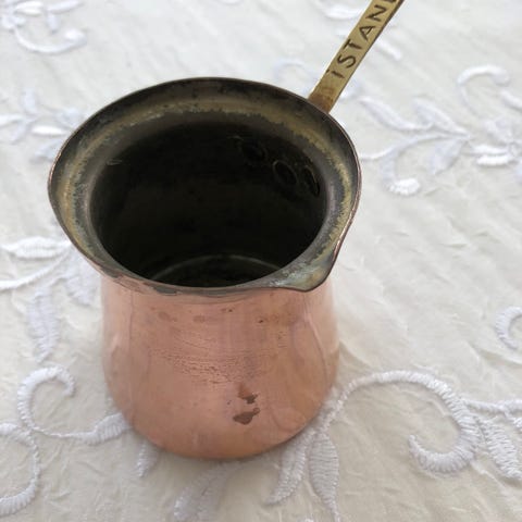 Kobberkande, Kobberkande brugt som gulv blomster skjuler, har ikke været pudset i flere år.