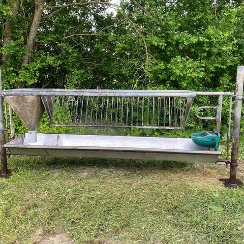 Holder høet tørt. Med foderkrybbe i bunden til kraftfoder. Galvaniseret udførelse.