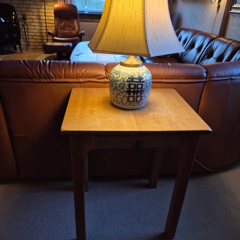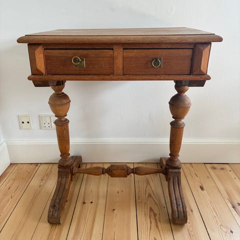 Tobaksbord, egetræ, b: 50 l: 37 h: 75, Afsyret eg med lille skuffe. Entrebord / tobaksbord / blomsterbord