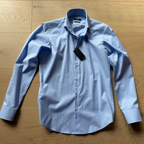Skjorte, Hugo Boss 40, str. M, Bomuld, God men brugt, Skjorte fra Hugo Boss ( sort linje) i str 40 svt M