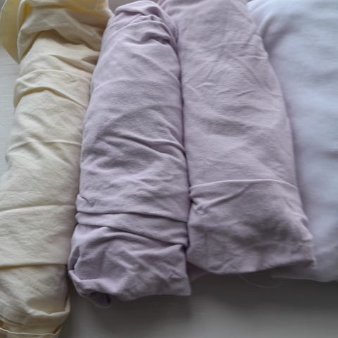 To lagner til tremmesengmadras 60x100 cm, brugt men i finnstand og stadig lang levetid. Lysrosa og lyslilla