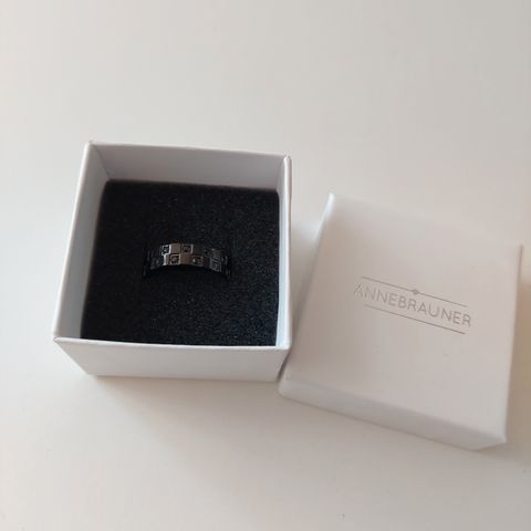 Ring, andet materiale, Anne Brauner Alliance, Rosaforgyldt ring med sorte Zirkoner sten str.58.