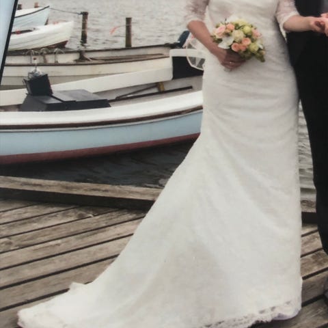 Brudekjole, Lilly, str. 34, God men brugt, Brugt men i meget god stand. Underkjole og dragtpose gratis.