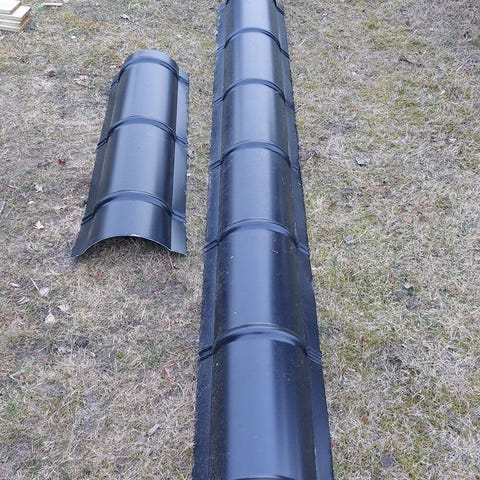 Rygning 30 grader i sort. , Decra, b: 23 l: 135, Decra tagrygninger i sort metal.