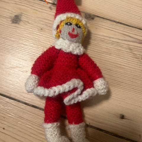 Strikket julenisse, Håndstrikket julenisse. 40 cm høj
