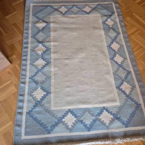Kelimtæppe i Uld, b: 140 l: 200, Kelim tæppe af uld. Virkelig smukt. Kan vendes. Nypris 1900 kr. Sælges for 700 kr. brugt mindre end et år og fejler intet. Certificeret Fair and Care.