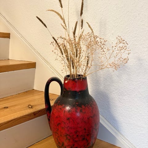 Vase/kande med hank , West Germany , motiv: Blå keramik