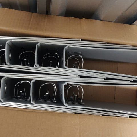 Kasse med 10 sorte ringbind, Nordic Office, A4, 75 mm, enkelte af ringbindene er helt nye og har aldrig været brugt.