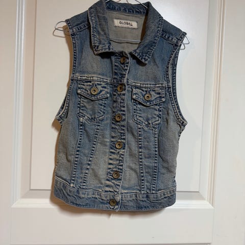 Vest, Global Funk, str. Medium, lyseblå, bomuld, Næsten som ny, Med brystlommer og knapper. I fin og perfekt intakt stand. Svarer til str. S/M- 38.