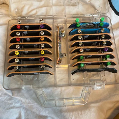 Andet legetøj, Tech deck board med 5 stickers + bmx og æske, Tech deck, Tech deck æske med 1 board og 5 stickers til at sætte på. Aldrig brugt. Æske har ridser flere steder