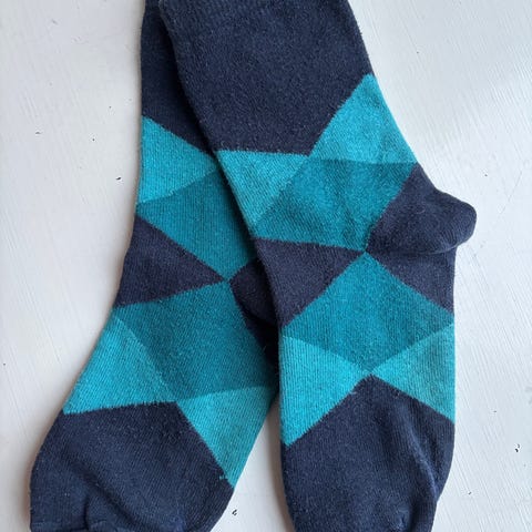 Strømper, Unisex, Fine, str. 116, 1 par blå strømper, ca str 116-122.