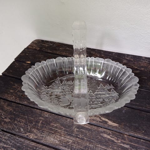 Glas, Skål, Hadeland, Norge, Smuk mundblæst glasskål med grønne nister designet af Willy Johansson. Diameter 16 cm og højde 9 cm. Signeret Hadeland 2118 W.J.
