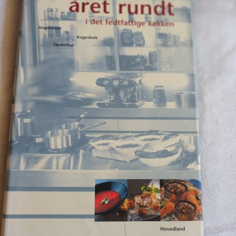 året rundt i det fedtfattige køkken, Anne Larsen & Louise Gert, emne: mad og vin, Stor format hardback, indbundet, omslag, 270 sider, år 2001, fremstår i meget pæn stand.