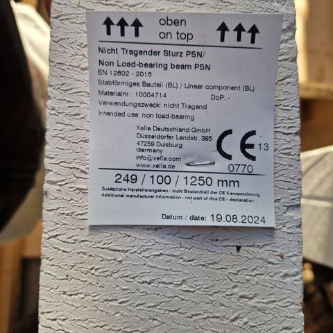 ytong, 1 stk Ytong (gasbeton) overligger bærende 10x26x171 cm
