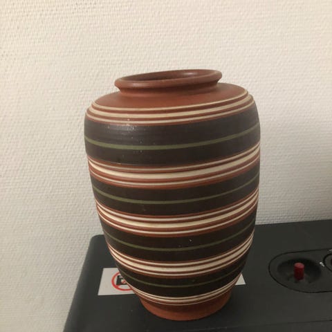 Vase og skål i ler, Flot vase og skål med engle på, fra først i 80 erne.H: vase 25 cm og skål H: 9 cm D:20 cm fin til nødder mm.samlet pris.senser gerne mod Porto.