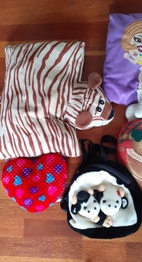 Pude, Børnepuder og en rygsæk, Lille rygsæk, 5 puder (Bratz, Elefant, tiger, hjerter) . Samlet pris 40 (eller 15 kr. per. stk.)