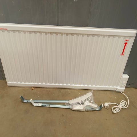 Elradiator, SAN (Svend A Nielsen), Effekt: 1500 Watt; Volt: 400; Længde 1330 mm; Afstand mellem ben 1070 mm. Med varme ribber. Pålidelig og stærk varmeovn